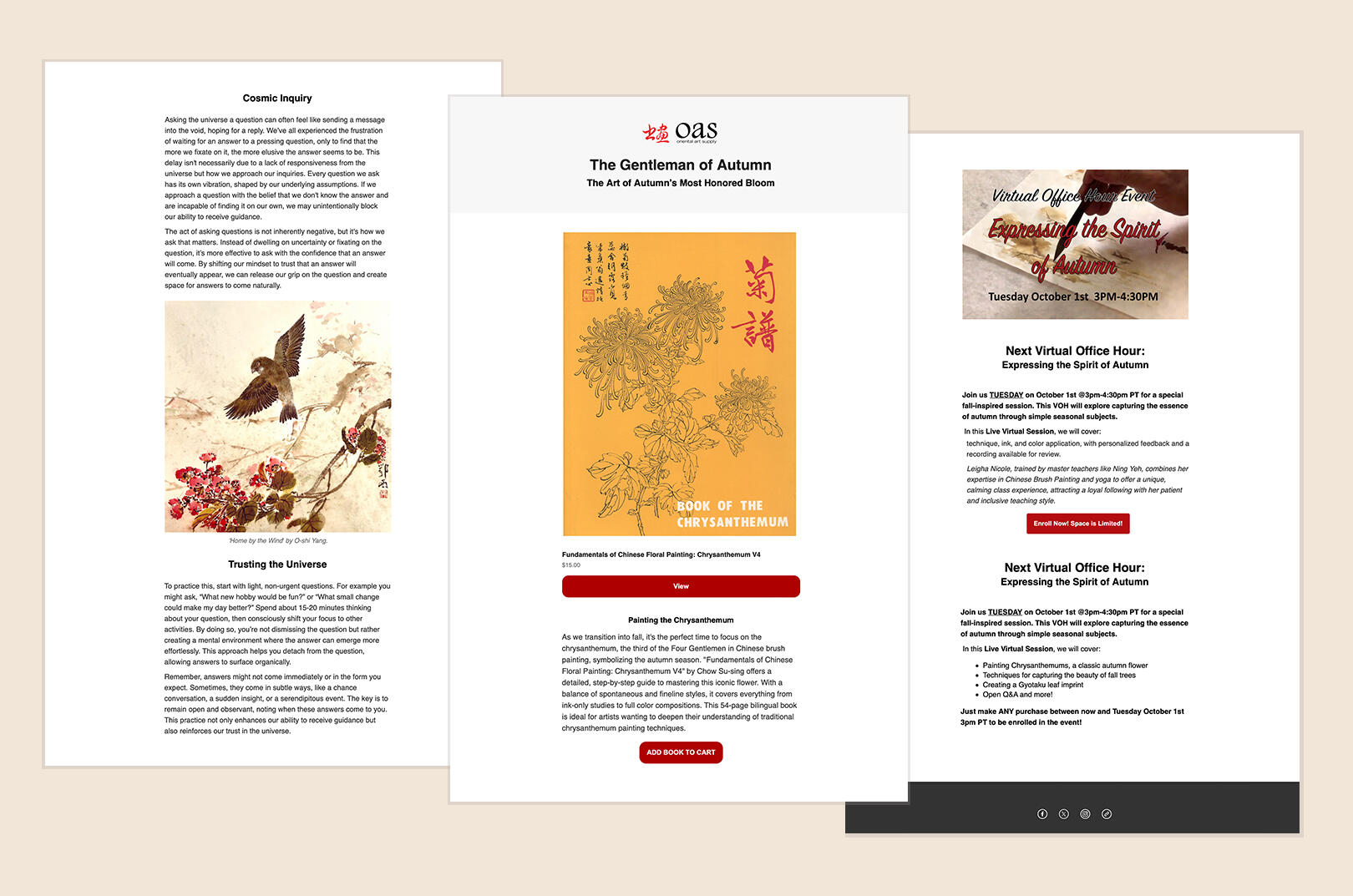 Blending philosophy, education, and product storytelling to support classes, books and seasonal offerings.